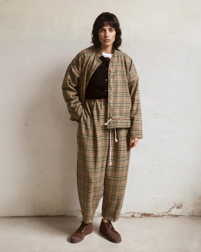 Groovy plaid trousers made from 100% premium merino wool. Features two seam pockets and a cotton drawstring waist. Made in Spain. One size fits all.