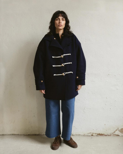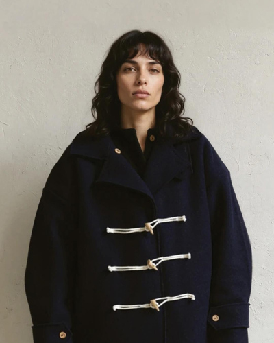 Classic double-layered duffle coat made from 100% boiled wool. Front opening with wooden button and cotton cord closure. Two front side pockets. Classic elegance with a contemporary design and raw edges. A versatile piece, perfect for any occasion. Made in Spain