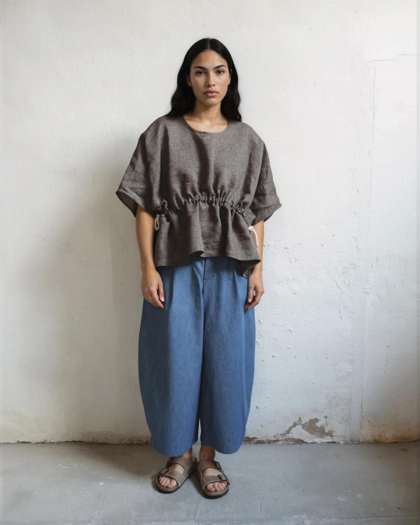 100% raw cotton skirt. Adjustable with drawstrings to modify the shape to your liking. Pockets in side seams. Made in Spain. One size fits all.