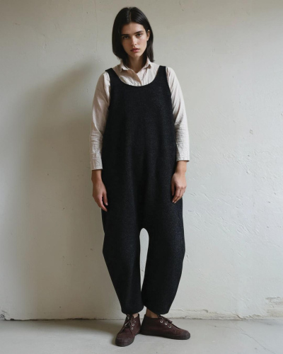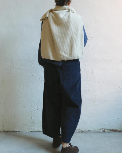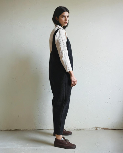 100% cotton 10 oz denim. Gorgeous rounded shape. Loose fit. Elasticated waist band in the back. Two side pockets and two back pockets. Made in Spain
