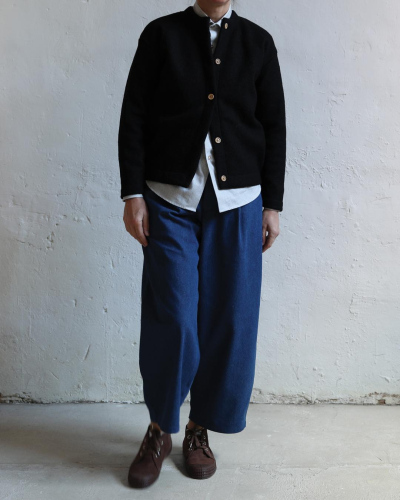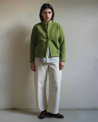 100% boiled wool cardigan. Made to last. Perfect to keep you warm. Featuring wooden buttons.
