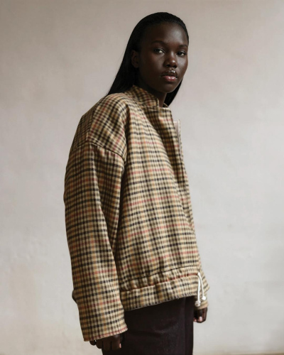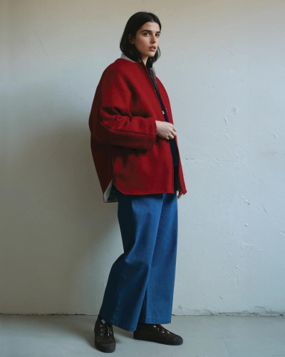 100% boiled wool vest with 100% raw cotton lining. Bomber style. Regular fit. Perfect with pants or dresses. Made in Spain
