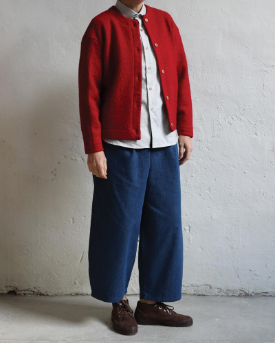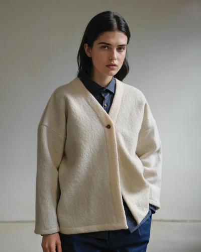 100% boiled wool cardigan. Made to last. Perfect to keep you warm. Featuring a stylish V neck. Loose fit.