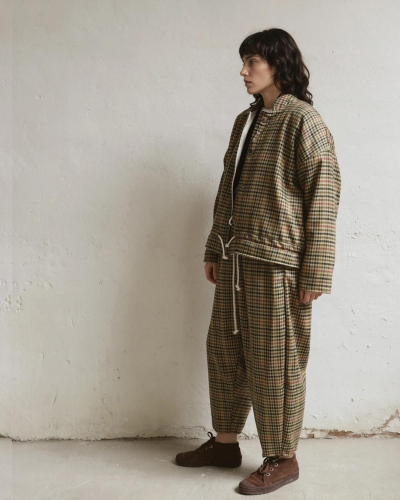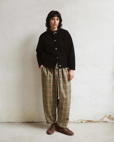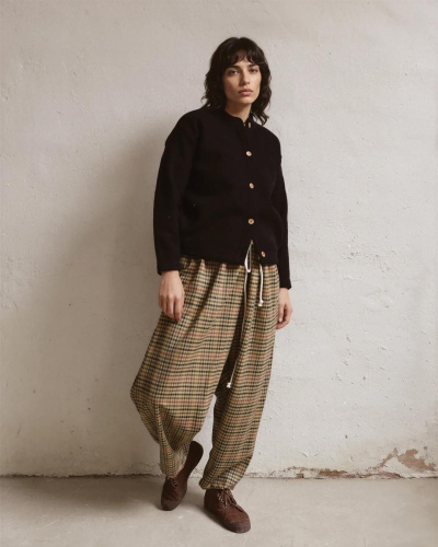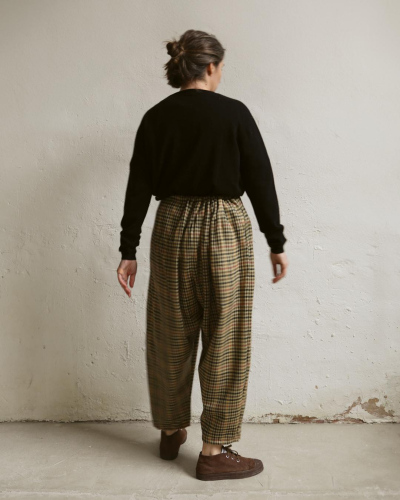 Groovy plaid trousers made from 100% premium merino wool. Features two seam pockets and a cotton drawstring waist. Made in Spain. One size fits all.