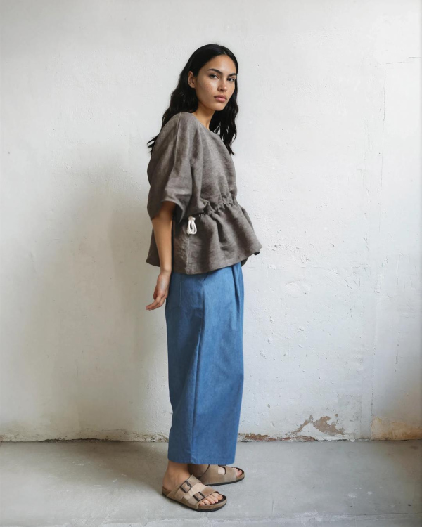 100% raw cotton skirt. Adjustable with drawstrings to modify the shape to your liking. Pockets in side seams. Made in Spain. One size fits all.