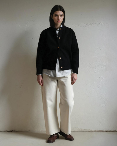 100% cotton canvas waxed jacket. Limited edition. 100% ecru raw cottton lining. Featuring mother of pearl buttons.